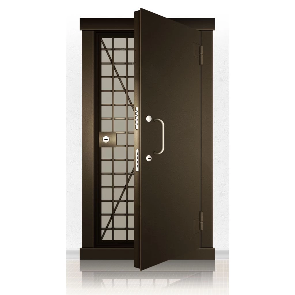 Металлические двери КХО и КХН представляют собой входные блоки, обладающие высоким уровнем взломостойкости и состоят из трех основных элементов: усиленного каркаса, сплошного металлического полотна и решетчатой двери. Дверной блок изготавливается из стального уголка 100*100 мм. Места крепления блока к стене цементируются и закрываются стальными наличниками шириной 40 мм. Крепеж заходит вглубь стены на 80 мм. В конструкции внешней створки монтируются ребра жесткости, для обшивки используется сталь толщиной не менее 3 мм. Внутренняя решетка изготавливается из прутка диаметром 16 мм. Размер ячеек решетки должен составлять не более 15 на 15 см. В точках пересечения прутья надежно приваривают друг к другу. В КХО и КХН необходимо поддерживать определенную температуру и влажность. Для этого внутреннее пространство глухой двери заполняется теплоизоляционным материалом, а по периметру двери приклеивается уплотнитель. Такие двери оборудуются замками с повышенным уровнем взломостойкости. Специализированные двери КХО и КХН в Мосальске могут быть оснащены сигнализацией, в конструкции могут быть проушины для навесного замка и элементами для опечатывания. Если идет речь о двери в комнату хранения оружия, в створке оборудуется окно для выдачи оружия и спец. средств, которое накрывается стальной дверцей.