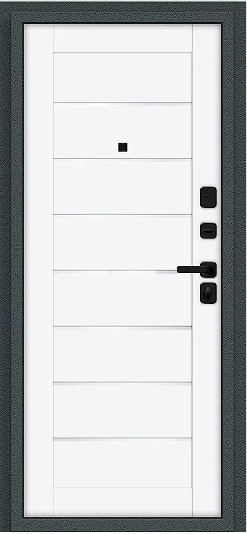 Надежная входная Дверь Браво Техно/SBlack Старк антрацит/White Silk премиум класса по цене 35 585 руб. Большая толщина стали защитит от проникновения в ваш дом, квартиру или коттедж. Используется очень качественная фурнитура: замки, цилиндры, ручки, защелки. Покрытие и отделка двери изготовлено под внимательным контролем производителя. Дверь имеет долгий срок службы и гарантию.